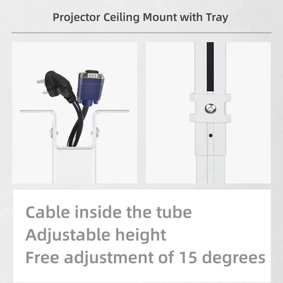 Sii Projector Ceiling Mount with Tray for Projector Camera, Carbon Steel Projector Mount for Business Conferences-Angle Height Adjustable Wall Ceiling Mounting (2 Feet)